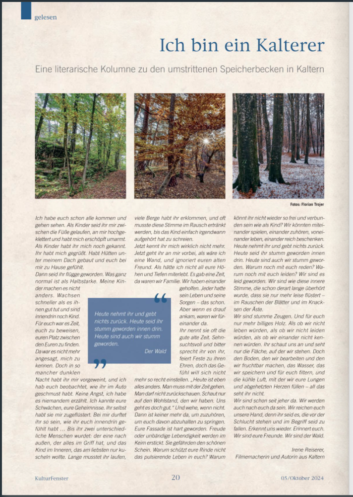 Changing fluently between different medias like film and art, I am interested in every aspect of narration. Be it by writing screenplays, books, concepts or essays, directing or acting in film or offering counselling for dramaturgy, I am fascinated by the transformational power of stories and the power of creating your own world. Being in the flow is not only a condition but the aim of all my art and life.